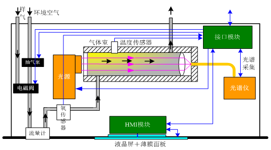 由于各種氣體分子在不同波段對光波有不同的吸收,通過對氣體吸收后的連續光譜的分析,實現了多種氣體的同時測量。